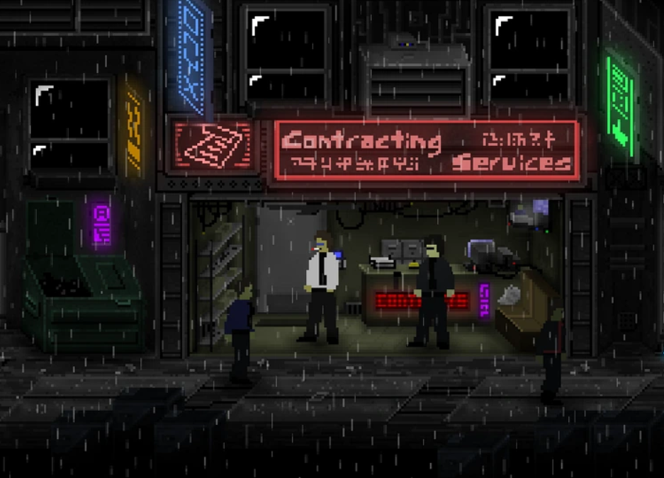 A 2D sci-fi, cyberpunk side-scroller developed with the Unity Engine. The prototype included melee and weapons combat, hiring a crew of syndicate agents, owning an apartment, changing outfits, cover systems, dialogue systems, alarm systems, drugs/boosters, and exosuits, hacking, card games and a few more features.